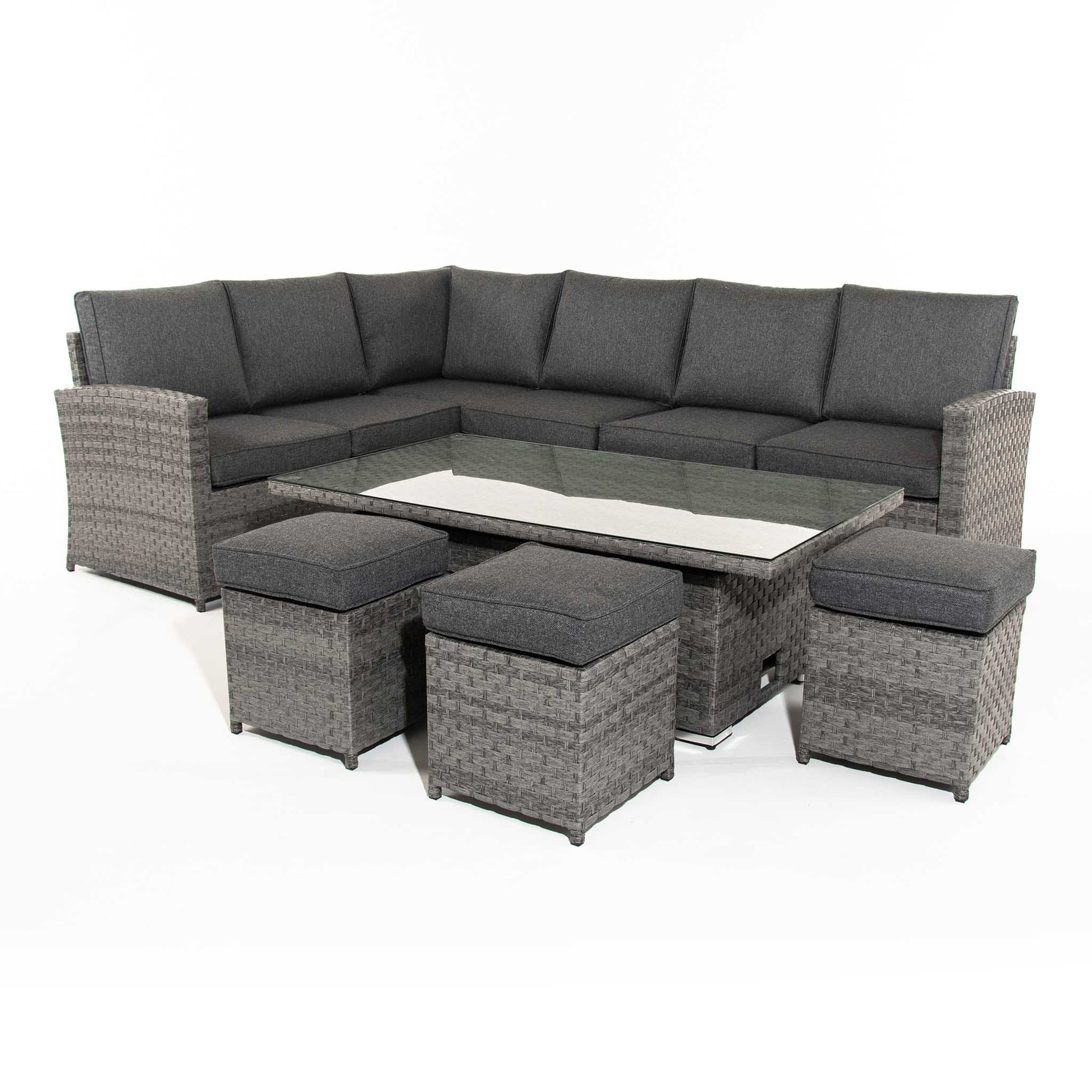 MELODY Corner Sofa with Rising Table and 3 Stools in Grey